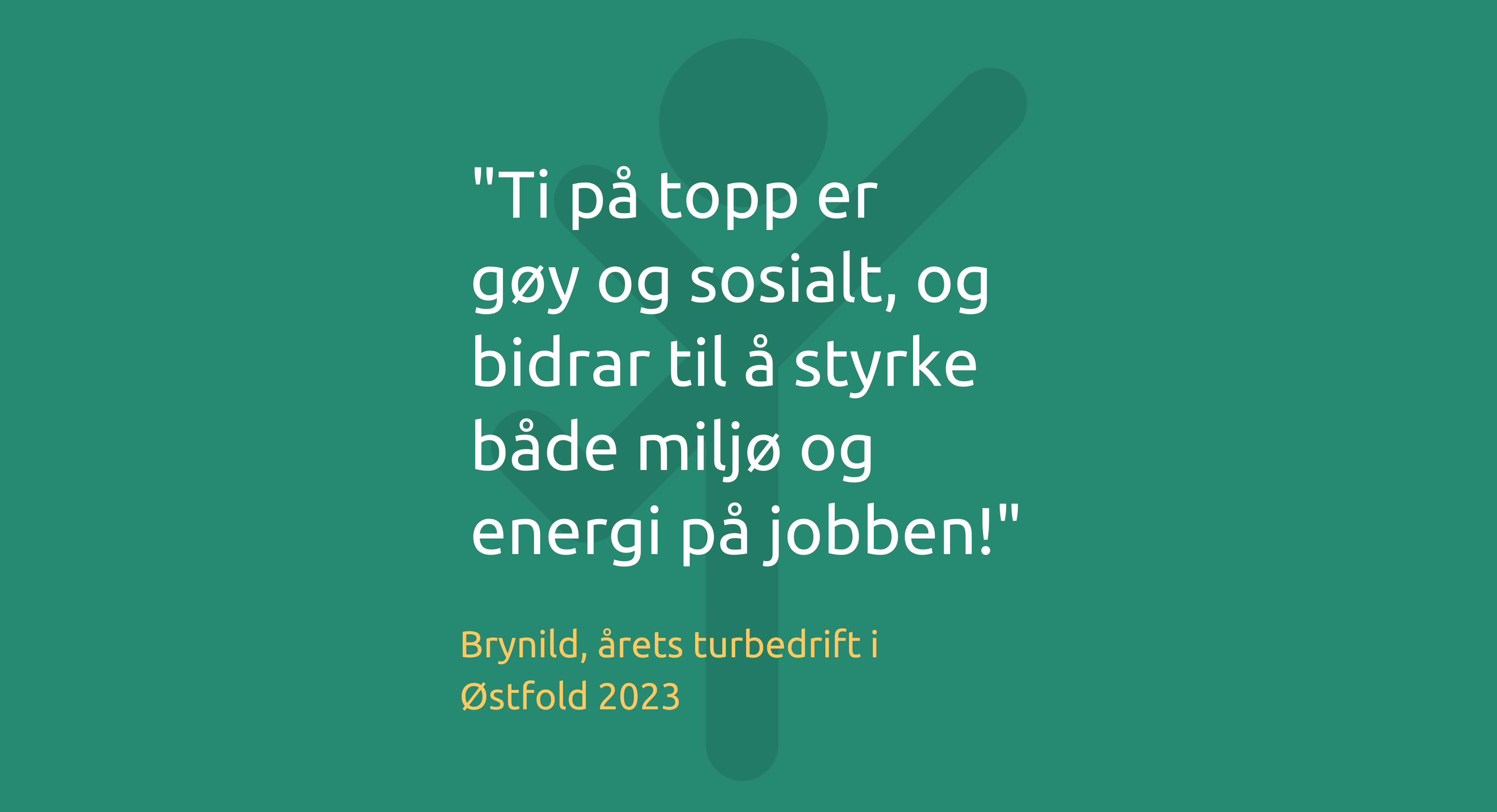 Vi har turer for alle, uansett fysisk form. Den sosiale støtten fra kolleger, familie og venner gjør det også lettere å opprettholde gode aktivitetsvaner, som på sikt kan forebygge sykdom og redusere sykefravær. Ti på topp gjør en forskjell for de som deltar, mer enn 60% sier at de er mer i aktivitet enn tidligere.